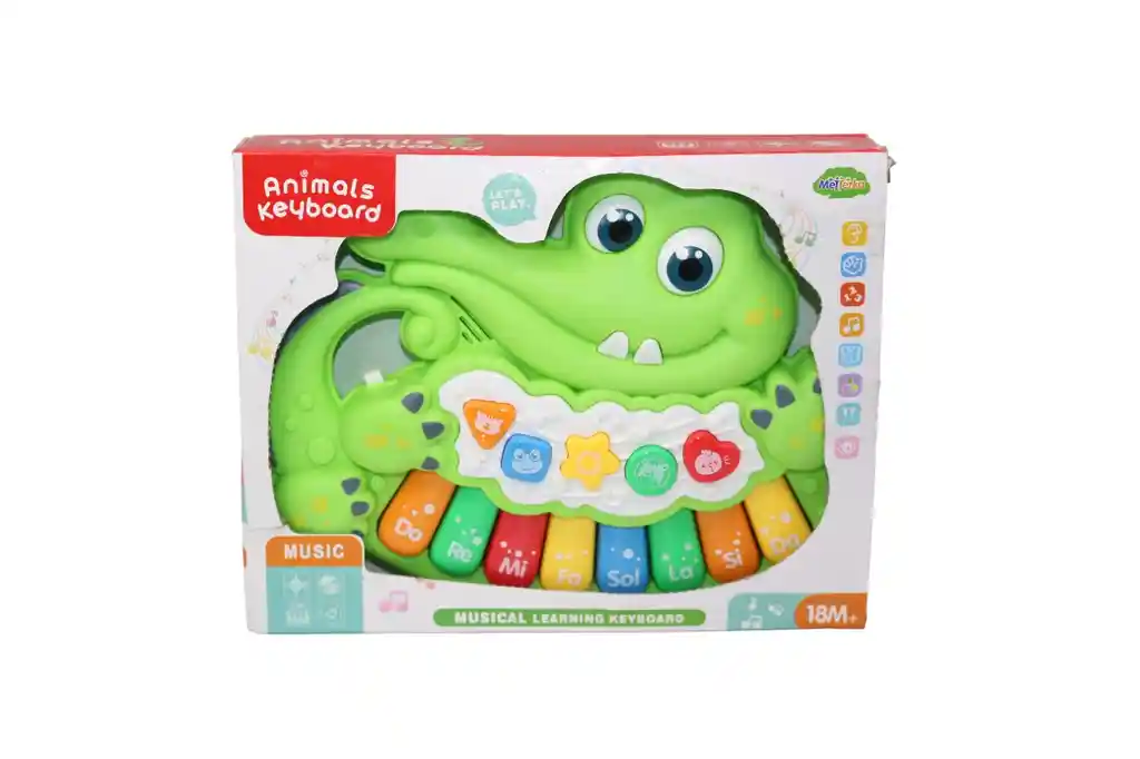 NOMBRE: PIANO COCODRILO CAJA DESCRIPCIÓN: Increíble Piano Cocodrilo con figuras de Colores llamativos y Sonidos divertidos, ideal para que la diversión y la música lleguen a las manos de tu pequeño. Piano Didáctico perfecto para cultivar el interés musical de los niños, fortaleciendo la coordinación motora, la imaginación, la coordinación ojo-mano, la disciplina y la persistencia. Requiere 3 pilas AA no incluidas. - Dimensiones del producto empacado: 21 X 17 X 5 centímetros - Disponibilidad permanente - Despachos a nivel nacional - Tiempo de entrega aproximado 3 a 4 días hábiles contados a partir del día hábil siguiente al pedido. La plataforma te dará un tiempo de entrega mas preciso al momento de concretar la compra. Estamos atentos a resolver cualquier inquietud que tengas después de revisar las fotos y descripción del producto. JUGUETELANDIA más de 30 años ofreciendo diversión. Fabricante: BO BO WANG WANG TOYS FACTORY Importador: Plasticos Asociados SA Recomendaciones: Requiere de la supervisión directa de un adulto, puede contener partes pequeñas, riesgo de asfixia o ahogamiento, no destinar este juguete para menores por debajo de la edad establecida en la etiqueta. Edad mínima sugerida: 18 meses Lote: Dato variable. Se puede verificar en el sticker que trae el producto físico. Fecha de fabricación: Dato variable. Se puede verificar en el sticker que trae el producto físico.