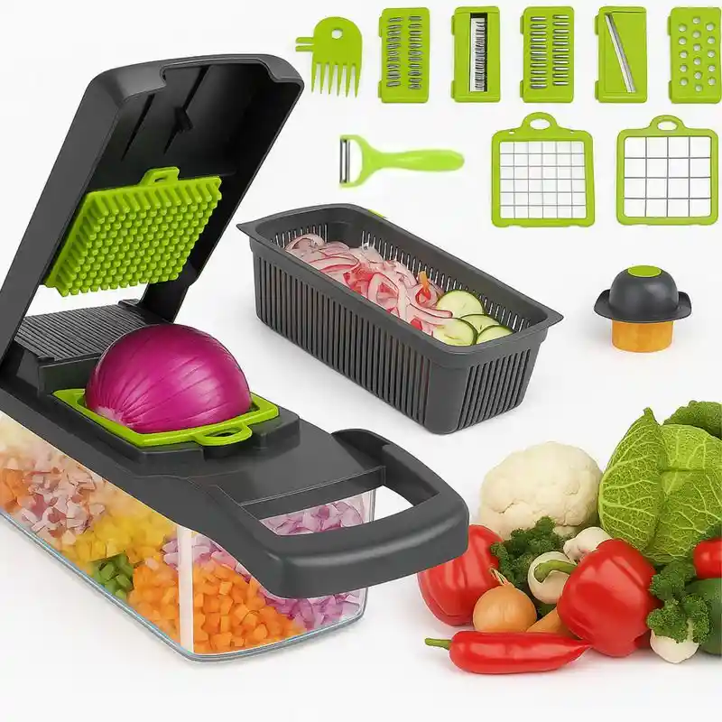 Transforme su experiencia en la cocina con el Picador Rallador de Verduras Mandolina. Este innovador rallador portátil, con un diseño compacto de 31.5 cm de largo y 11.5 cm de ancho, le permitirá disfrutar de la preparación de alimentos sin complicaciones. Fabricado con un resistente cuerpo de plástico y una hoja de acero inoxidable, garantiza durabilidad y eficacia en cada uso.