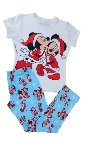Déjate enamorar por esta hermosa pijama navideña elaborada en piel de durazno, una tela suave, ligera y súper cómoda que abraza la piel con una sensación aterciopelada. La camiseta, con mangas cortas y estampado de una pareja de ratoncitos súper tiernos en estilo navideño, destaca por sus colores vibrantes y su diseño lleno de amor y espíritu festivo. El pantalón largo, en tono azul celeste, combina a la perfección con el conjunto gracias a su estampado repetido de los mismos personajes rodeados de copitos de nieve, creando un look divertido, dulce y perfecto para la temporada. Ideal para noches frías, fotos navideñas, compartir en familia o simplemente disfrutar de la comodidad con estilo. 🎅❤️❄️ Comodidad, ternura y Navidad en una sola prenda.