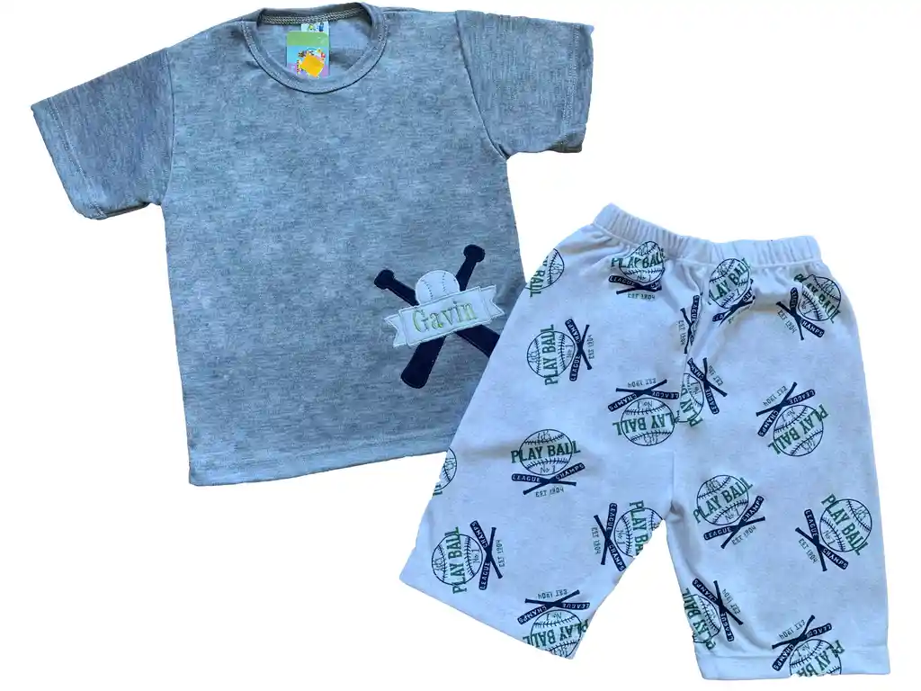 Lindo Conjunto PLAY BALL para niños. Pijama para niños multifuncional de 2 piezas Talla 2. Suaves y muy cómodos Largo del Short 36 Cm.