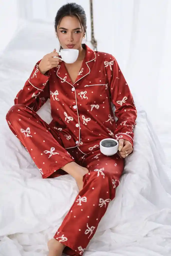 Pijama Mujer Satín Moños SoftLuxury ✨ Descripción Conjunto de pijama femenino elaborado en satín suave y sedoso, con un delicado diseño de moños y puntos que aporta un look elegante, femenino y sofisticado. Ideal para descansar con estilo y sentirte cómoda en casa. 💎 Satín ligero, fresco y ultra suave al tacto Sensación sedosa que no acalora Talla única, se adapta cómodamente gracias a su material Diseño botonado práctico con acabados finos 🌙 Cómo usarla Perfecta para dormir, relajarte en casa, disfrutar tu café por la mañana o una noche de autocuidado con un toque de elegancia. 💖 Al tenerla obtienes Máximo confort y suavidad Un look femenino y elegante incluso en casa Sensación de lujo en cada uso Ideal para regalar o consentirte 🚀 Entrega rápida Recíbela en 30 a 50 minutos desde que realizas tu compra. 🛒 ¿Por qué la compraría yo? Porque el satín se siente increíble, luce elegante y hace que descansar se sienta especial. 👉 Agrégala a tu carrito y duerme con estilo. ✨💤