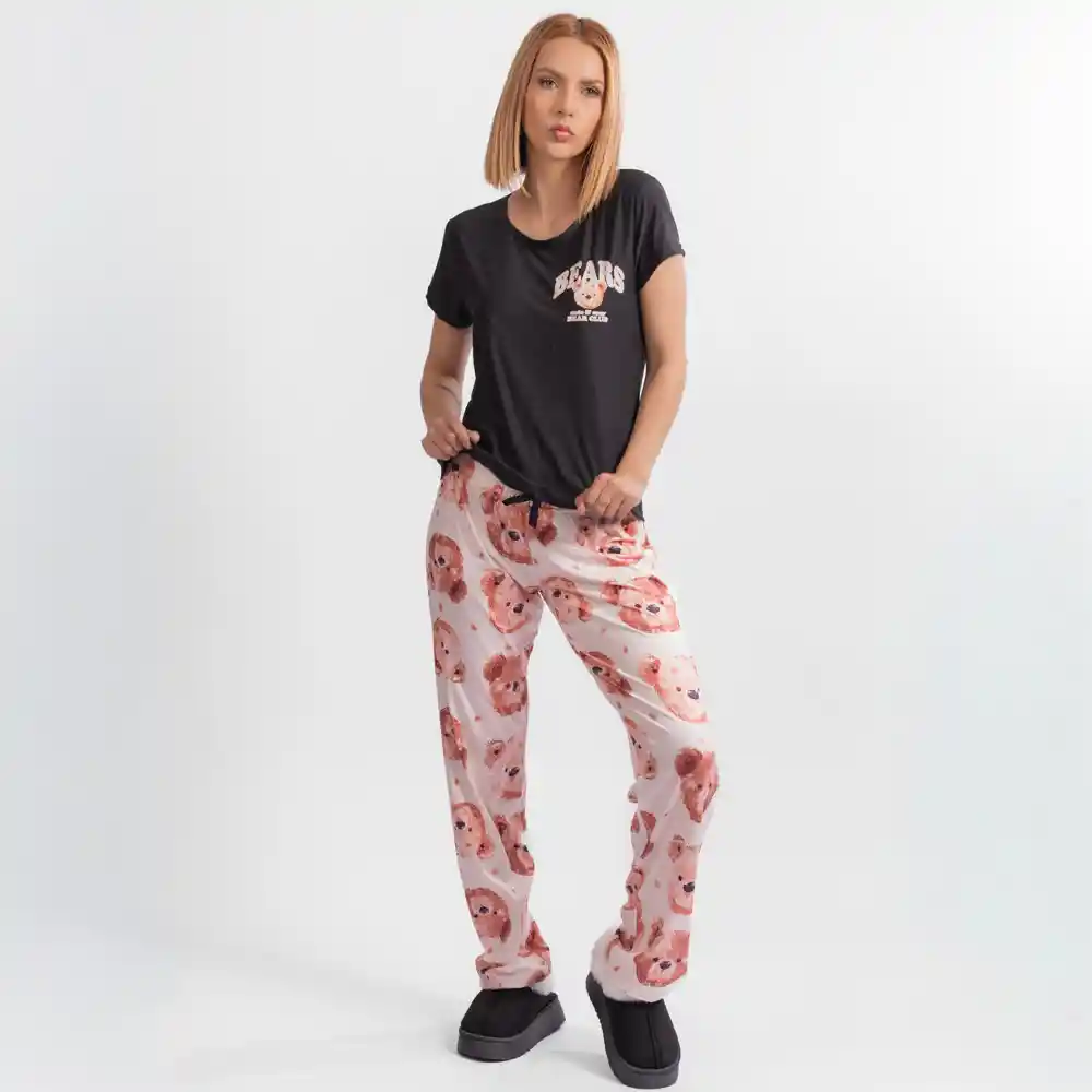 Hermosa pijama tres pieza con delicado estampado de oso, camisa manga corta, pantalón y short con resorte en la cintura, una pijama única y delicada, material suave y fresco, perfecta para la comodidad de tu hogar, ideal para tu plan de vacaciones, fiesta de pijama, material suave, un diseño que te hará sentir única, es una prenda que no puede faltar en tu closet. Color: Único Tallas disponibles: S, M, L, XL