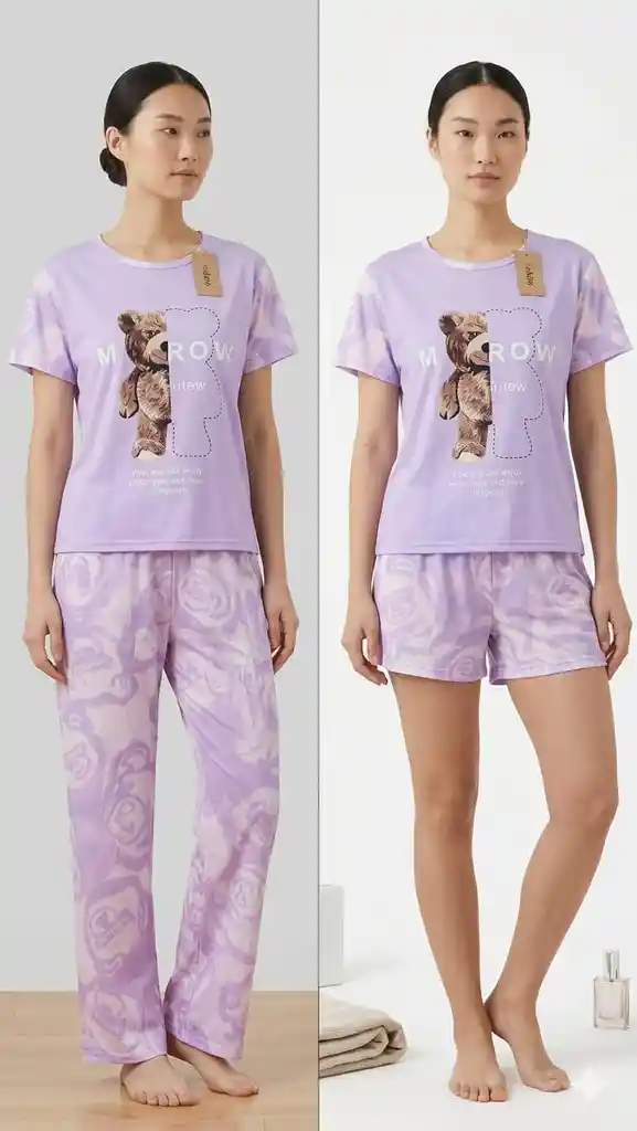Pijama tres piezas , top,short y pantalon, estampada,,talla unica