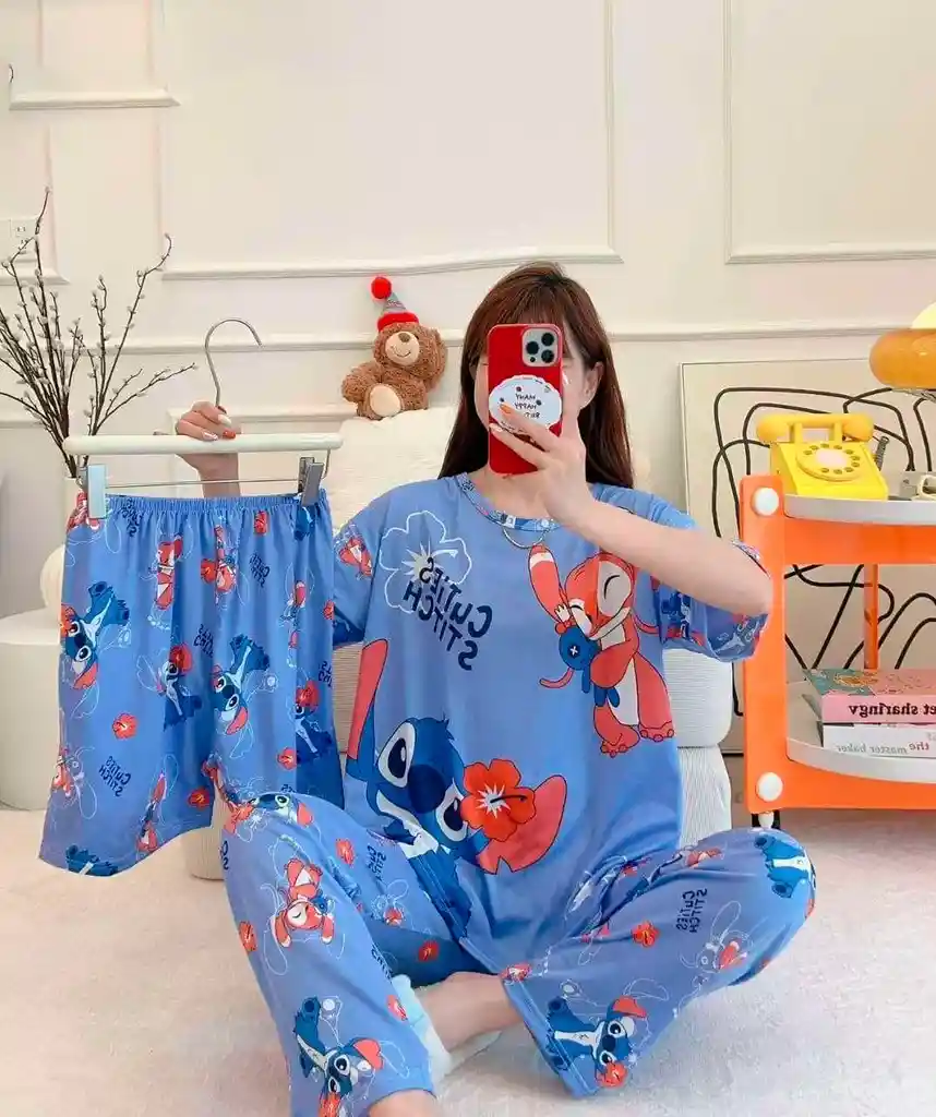 ✨ Pijama X3 Stitch Deluxe 🛍️ Descripción irresistible Conjunto de pijama inspirado en el adorable personaje de Stitch, diseñado para quienes aman la comodidad sin perder estilo. Incluye camiseta + pantalón largo + short, ideal para descansar o relajarte en casa con total libertad. TALLA UNICA 💖 ¿Qué obtienes al tenerla? Sensación ultra suave al contacto con la piel Frescura y comodidad todo el día o la noche Versatilidad: úsala para dormir, estar en casa o incluso para un día relajado 🌟 Calidad que se siente Fabricada en tela ligera, fresca y transpirable, con excelente caída. Su material flexible permite que se adapte perfectamente: talla única que se ajusta cómodamente a diferentes tipos de cuerpo. 👗 ¿Cómo usarla? Para dormir: máxima comodidad sin calor Para homewear: luce linda sin esfuerzo Mix & match: combina el short o pantalón con otras prendas 🚀 Entrega express Recíbela en 30 a 50 minutos después de tu compra. ¡Rápido y sin esperas! 💬 es ese tipo de pijama que te hace sentir cómoda, linda y relajada al mismo tiempo. Perfecta para consentirte o regalar 💝
