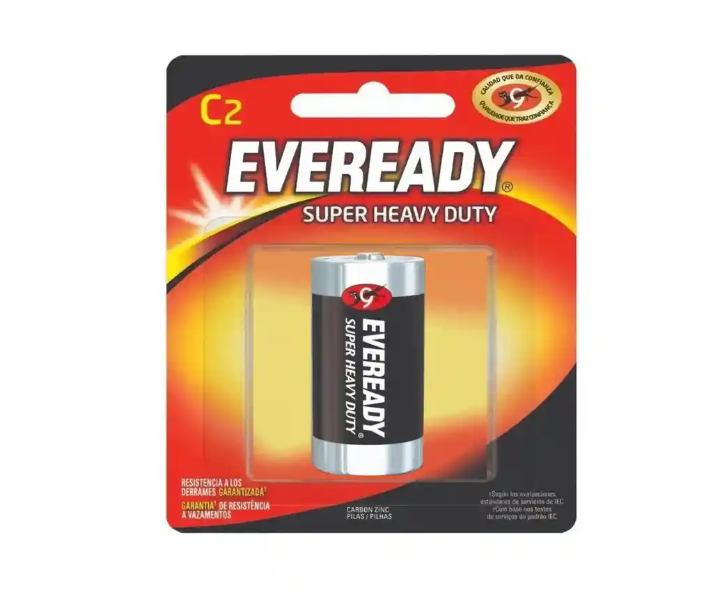 • Marca: Eveready • Línea: Super Heavy Duty • Modelo: C2 • Tamaño de la pila: C • Forma: Cilíndrica • Formato de venta: Pack • Unidades por pack: 2 • Es recargable: No • Es inflamable: Sí