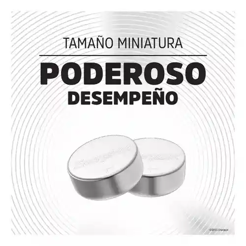 Marca: Energizer Modelo: A76 Voltaje nominal: 1.5V Es recargable: No Composición: Alcalina Capacidad de la pila: 110 mAh Color: Plateado Usos recomendados: Control de coche, juguetes, relojes, accesorios, alarmas Tiempo máximo de retención de carga: 10 años Con mercurio: No