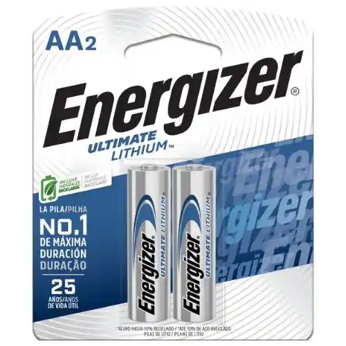 Las pilas de litio Energizer Ultimate Lithium AA están diseñadas para brindar máximo rendimiento, mayor duración y confiabilidad superior frente a las pilas alcalinas tradicionales. Gracias a su tecnología de litio avanzada, ofrecen una energía potente y constante, ideal para dispositivos electrónicos de alto consumo y para situaciones donde se requiere un desempeño seguro incluso en condiciones extremas. Estas pilas se caracterizan por su larga vida útil y resistencia a temperaturas muy bajas o muy altas, lo que las convierte en una excelente opción tanto para uso doméstico como profesional. Además, cuentan con protección contra fugas bajo condiciones de uso estándar, ayudando a proteger tus dispositivos electrónicos. Su presentación en blíster de 2 unidades facilita su almacenamiento y transporte, permitiendo tener energía confiable disponible cuando más la necesites. Ficha técnica Marca: Energizer Tipo de batería: Litio Tamaño: AA (Doble A) Presentación: Blíster con 2 pilas Protección contra fugas: Garantía de no fugas bajo uso estándar Vida útil en almacenamiento: Hasta 25 años Temperatura de funcionamiento: -40 °C a 60 °C (-40 °F a 140 °F) Uso recomendado: Interior y exterior durante todo el año ¿Para qué sirven? Las pilas AA de litio son ideales para alimentar dispositivos que requieren energía constante y de larga duración, tales como: Cámaras digitales Controles remotos Linternas LED Juguetes electrónicos Sensores y dispositivos de seguridad Equipos electrónicos portátiles Gracias a su alto rendimiento y larga duración, las pilas de litio Energizer son una excelente opción para quienes buscan energía confiable, mayor autonomía y desempeño superior en sus dispositivos electrónicos.