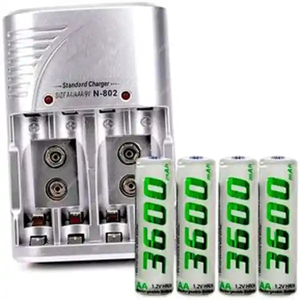 Incluye 4 Pilas. Baterías de Alta Tecnología de Protección Ambiental Recargables Ironbat Uno de Los Grandes Fabricantes de Dispositivos Eléctricos y También de Baterías, Presenta Ahora Baterías Mejoradas Ni-Mh, Que Son Del Más Alto Nivel Mundial en Capacidad Nominal. Carga 4 Baterías Recargables AA Ni-Mh o Ni-Cd al Mismo Tiempo. La Led Azul Alumbrará Mientras se Carga, y se Apagará Cuando Está Totalmente Cargada 9.5Horas Después. Protección de Temperatura: se Prende Cuando la Temperatura Está Por Encima de 60°C. Si el Cargador o Las Baterías Están Recalentadas Durante la Carga, se Detendrá la Carga Automáticamente Por Seguridad. Protección de la Sobre Intensidad de Corriente: Con el Modo de Corriente Constante, Cualquier Influencia Negativa de Baterías Causada Por Fluctuaciones de Corriente se Puede Evitar. Especificaciones Cargador Baterías Recargables Entrada: 100-240V Ac, 50-60Hz Salida: 1.2V Baterías Tipo: AAA / AA / 9V Composición: Ni-Mh (Níquel Metal Hidruro) Vida Útil: Hasta 1000 Veces Teóricamente Carga Siempre Lista: si Incluye 4 Baterías AA