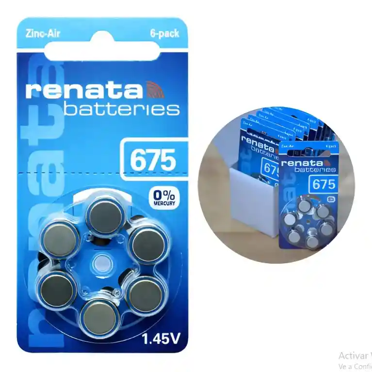 Las Pilas Renata 675 PR44 Zinc Air son la elección ideal para quienes buscan la máxima calidad y durabilidad en sus audífonos. Fabricadas bajo estándares de precisión alemana, estas pilas ofrecen un rendimiento confiable, estable y potente, garantizando una experiencia auditiva superior en todo momento. Este blister incluye 6 unidades, perfectas para mantener tus dispositivos siempre funcionando. Su tecnología Zinc-Air proporciona una descarga uniforme y de larga duración, ideal para audífonos digitales y de alto consumo. Gracias a su energía constante, mejoran la limpieza del sonido y optimizan la autonomía del dispositivo. Las pilas Renata destacan por su activación rápida, excelente estabilidad y compatibilidad universal con audífonos que utilicen tamaño 675/PR44. Son seguras, libres de mercurio y reconocidas mundialmente por su calidad premium. Si buscas un rendimiento prolongado, claridad auditiva y una marca confiable, las Renata 675 PR44 son la opción perfecta para el uso diario y profesional.