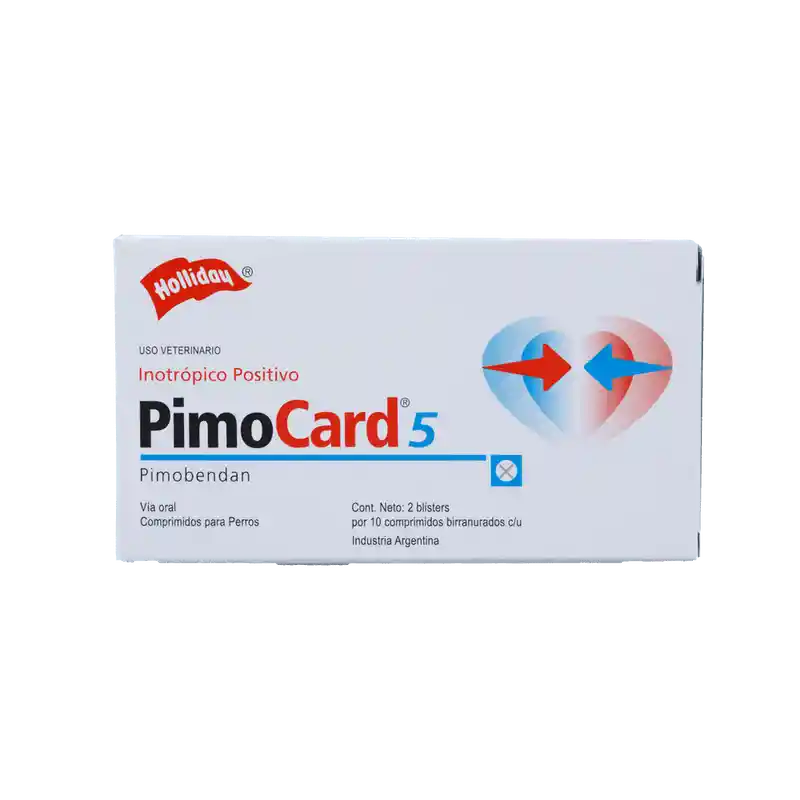 Los problemas del corazón ya no tienen que ser una preocupación constante. Con PIMOCARD, estás dando a tu perro la mejor oportunidad para vivir una vida llena de salud y vitalidad. Principales Beneficios Incrementa significativamente la fuerza de contracción cardíaca a través de la sensibilización del miocardio a los efectos del calcio y la inhibición de la enzima fosfodiesterasa-III. Reduce eficazmente la resistencia vascular, promoviendo una vasodilatación que beneficia la circulación y salud cardíaca de tu perro. Trata y previene la insuficiencia cardíaca congestiva tipo C en perros, causada por insuficiencia valvular o cardiomiopatía dilatada.