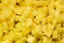 Piña 100% natural picada y congelada. Presentación de 400 gramos lista para jugos y preparaciones saludables.