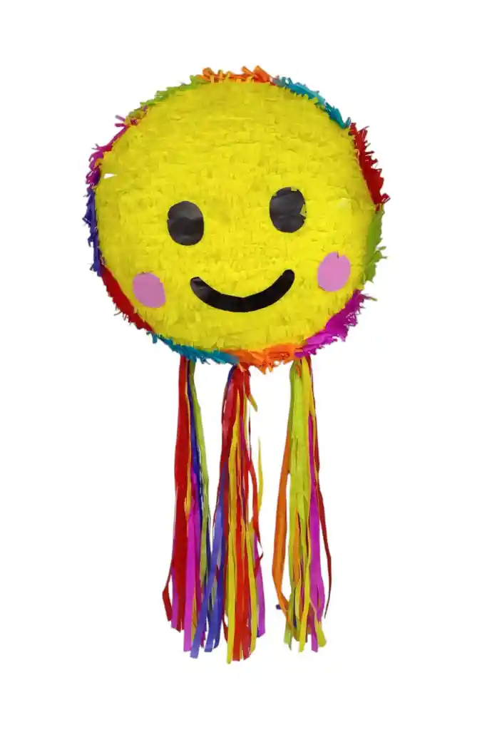 "Piñata grande de carita Feliz o cara feliz en papel y carton mide 45 centímetros de alto por 45 centimetros de ancho por 20 centirmtros de fondo ideal para fiestas y piñatas para romper con palo pinata adultos piñata niños piñata niñas"