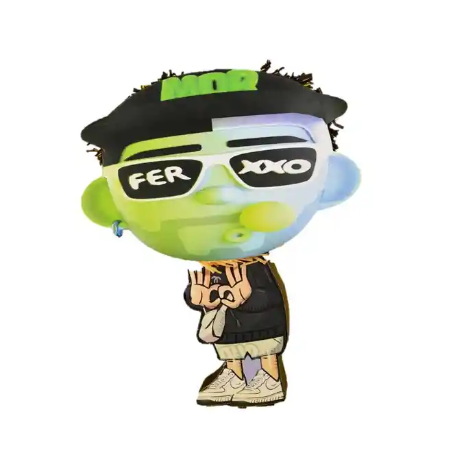 Piñata POP Ferxxo Feid diseño en color Verde materiales de papel y carton alto de 55 cm ancho de 57 cm aproximados trae cuerda para colgar incluye 1 paquete de papel picado de colores NO INCLUYE RELLENO si deseas algo adicional indícanos y con gusto te colaboramos