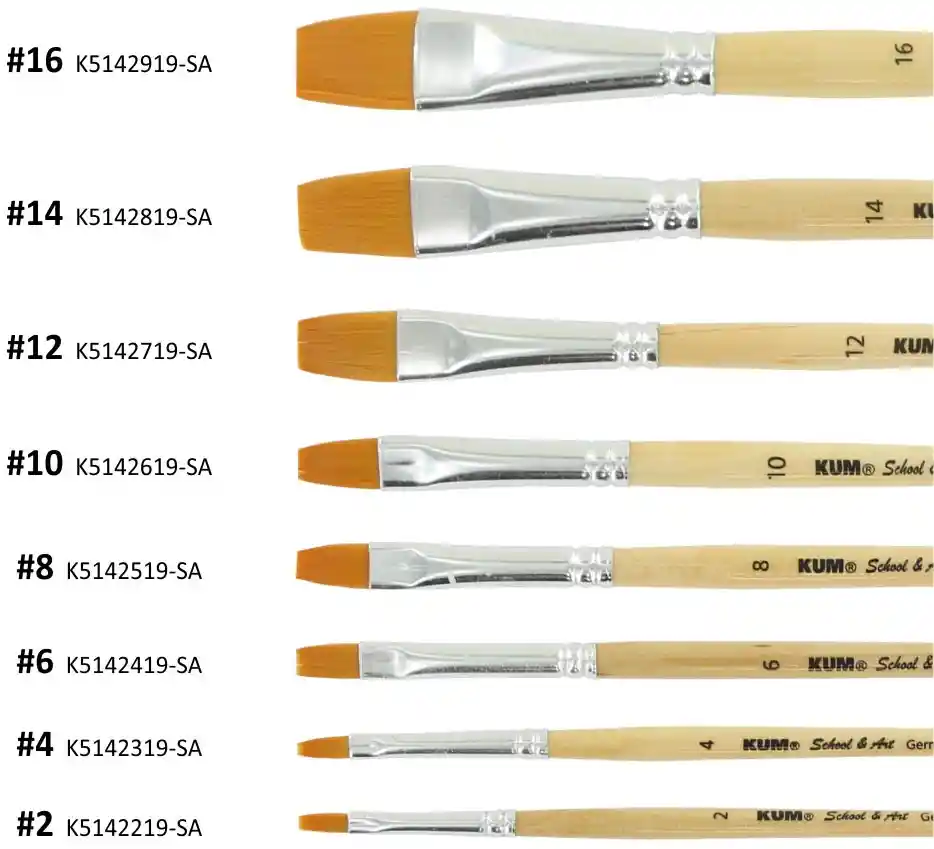Usos Comunes El pincel plano es un favorito en muchas técnicas artísticas debido a su funcionalidad: Cubrir Áreas Grandes: Ideal para aplicar bases de color uniformes, fondos y barnices, ya que extiende la pintura de manera eficiente y deja pocas marcas de pincel. Líneas y Bordes Rectos: Su borde afilado permite pintar líneas rectas, bordes de edificios o contornos definidos con gran precisión. Técnicas de Acuarela: En acuarela, se utiliza para lavados (aplicaciones uniformes de color diluido) y para técnicas que requieren bordes nítidos. Óleo y Acrílico: Es esencial para mezclar colores en la paleta y para aplicar pintura en capas con textura (impasto) o en capas suaves. Manualidades y Bricolaje: Muy útil para pintar muebles pequeños, marcos, maquetas y proyectos escolares donde se necesita cubrir superficies con rapidez y uniformidad.