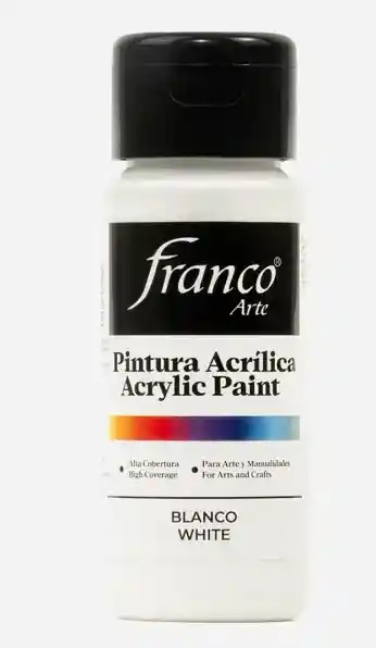 Pintura Acrilica Franco Arte Color Blanco Para pintar diferentes tipos de superficies Alta Cobertura Para Artes y Manualidades Tamaño 60ml