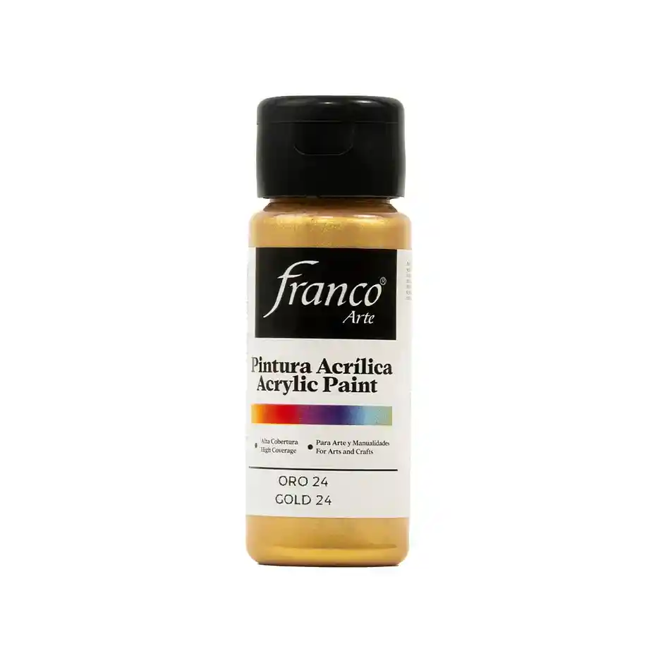 La PINTURA ACRÍLICA FRANCO ARTE es una pintura a base de agua cuyos formadores de película son emulsiones acrílicas. Esta Pintura ecora, protege o señala, materiales como: madera, MDF, yeso, cerámica, cartón, papel, icopor, paredes (interiores), entre otros. Acabado liso, durable, no se decolora, lavable, alto rendimiento, buen cubrimiento, fácil aplicación, excelente adherencia, resistencia a la abrasión, entre otros.