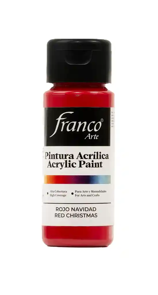 Pintura Acrilica Franco Arte Color Rojo Para pintar diferentes tipos de superficies Alta Cobertura Para Artes y Manualidades Tamaño 60ml