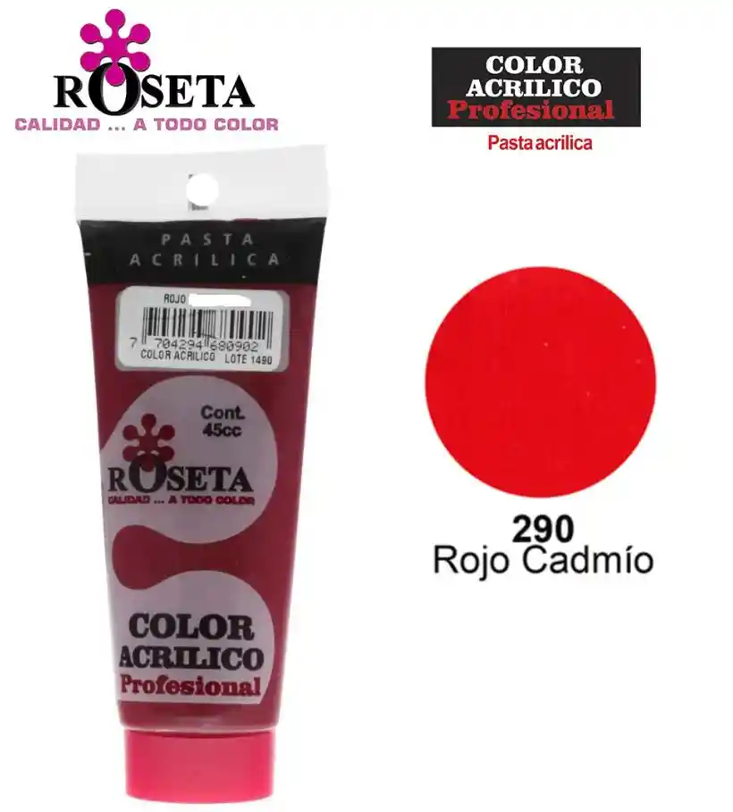 PINTURA ACRILICA ROSETA COLOR ROJO CADMIO-290 X UNIDAD TUBO DE 45CC PINTUR