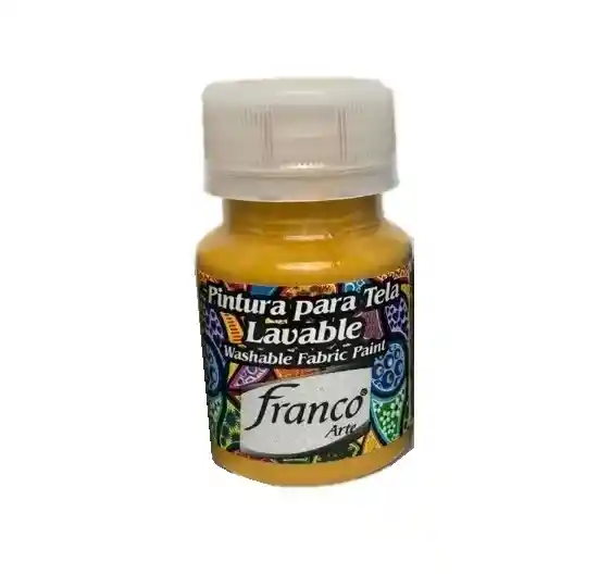 🎨 PINTURA PARA TELA FRANCO ARTE. Resistente Al Lavado. Ideal para pintar y estampar tela. Súper flexible, buen cubrimiento. No acartona la tela. Es recomendable lavar previamente la tela antes de pintar para eliminar polvo y grasa. Dejar secar por 72 horas y planchar por el revés a temperatura media. Manténgase fuera del alcance de los niños. Agite antes de usar. Contiene: 30 cm3