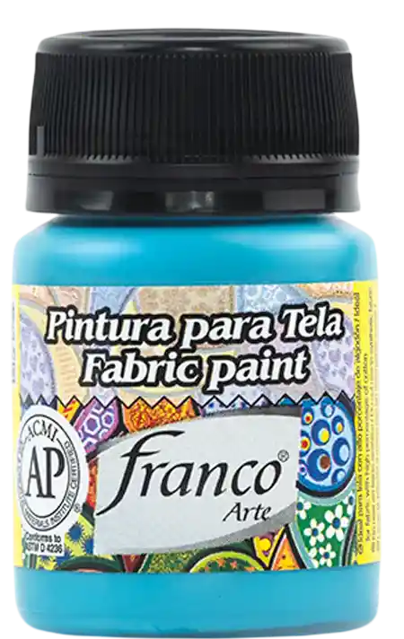 Pintura para Tela Turquesa resistente al lavado. Se vende por unidad Tarro de 30 cc.