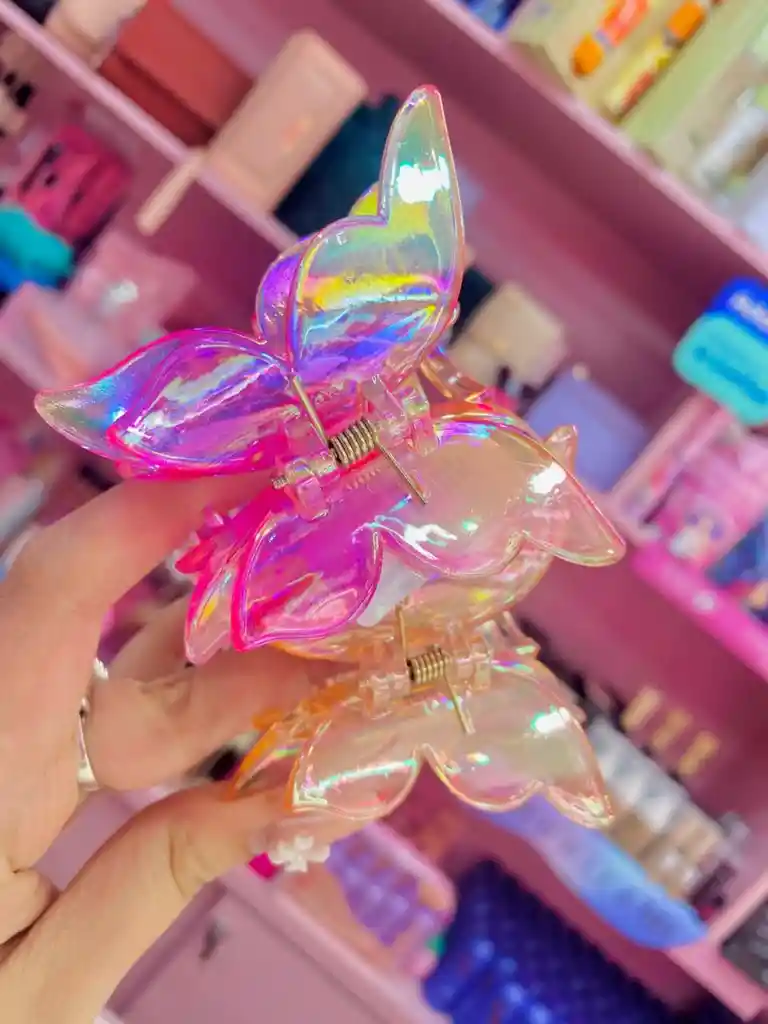 Dale un toque mágico a tu peinado con esta pinza mariposa efecto tornasol, perfecta para sujetar el cabello con estilo 🌈. Su diseño iridiscente refleja la luz creando destellos hermosos y femeninos 💫. 💜 Características: Diseño de mariposa grande y brillante 🦋 Material resistente y liviano Ideal para cualquier tipo de cabello Agrega un toque glam y tierno a tus looks diarios 📦 Se envían colores según disponibilidad de la tienda.