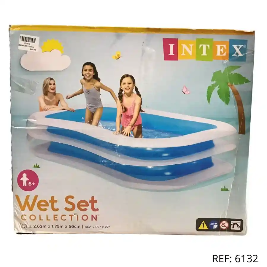 Piscina inflable rectangular Intex. Amplia, resistente y perfecta para que niños mayores de 6 años disfruten del agua en casa.