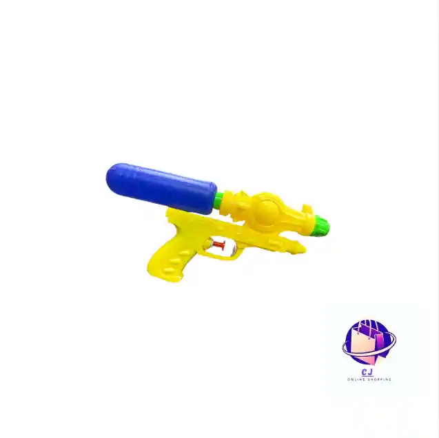 Pistola de agua de juguete tamaño mediano, de color amarillo, fabricada en plástico resistente. Se llena con agua y al presionar el gatillo dispara un chorro continuo, ideal para juegos al aire libre, piscina o playa.