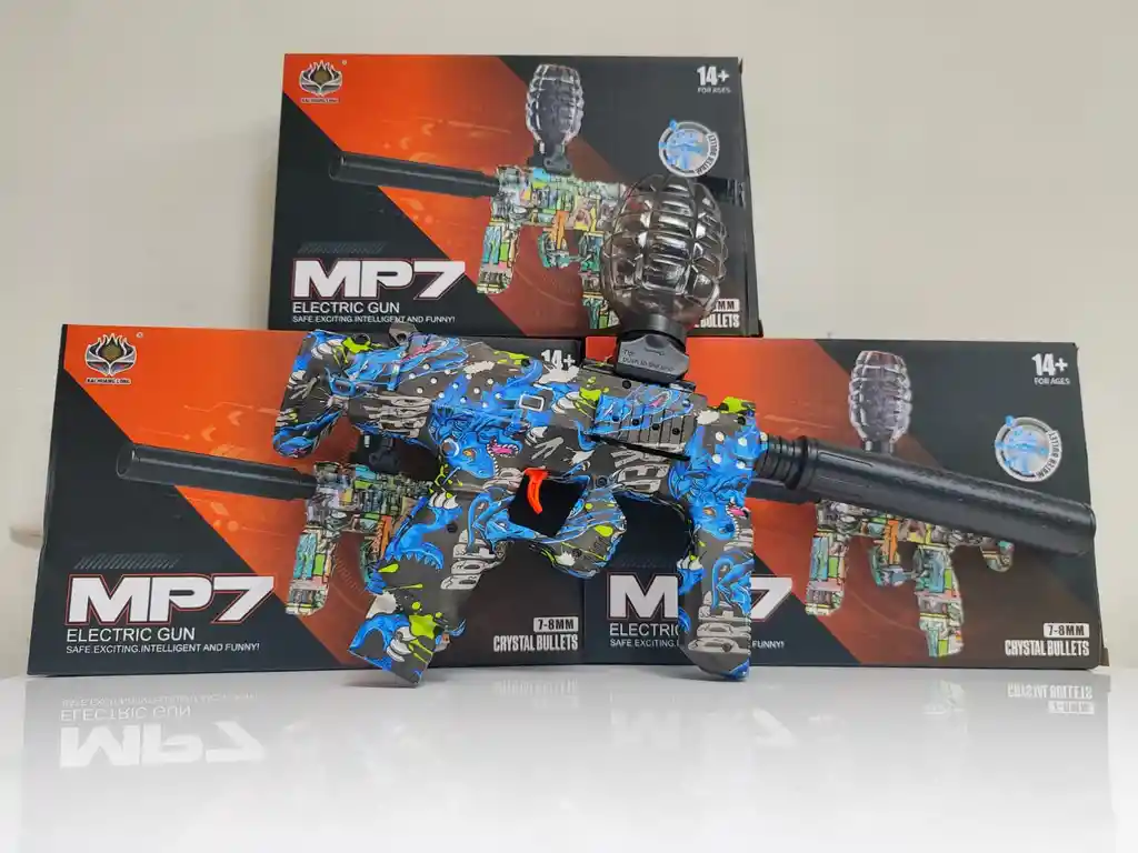 Color sujeto a disponibilidad Utiliza munición de gel biodegradable de 7-8 mm que se expande en agua, garantizando un impacto suave y sin riesgo físico significativo. El diseño reproduce la ergonomía del modelo MP7 real, con un acabado colorido tipo cómic y materiales ligeros de alta resistencia. Diversión asegurada en cada bolita de hidrogel Descubre el Lanzador de Hidrogel estilo MP7, diseñado para vivir batallas emocionantes con amigos. Su acabado camuflado en colores vibrantes lo hace único, resistente y muy llamativo. Características principales: Modos de disparo: Automático de alta velocidad, mantén presionado el gatillo y dispara sin parar. Recargable: Incluye cable USB para mantenerlo siempre listo. 500 bolitas de hidrogel incluidas (7 mm, crecen tras 4 horas en agua). Alcance de hasta 20 metros, dispara con precisión. Silenciador incluido para misiones tácticas. Depósito transparente: recarga fácil y rápida.