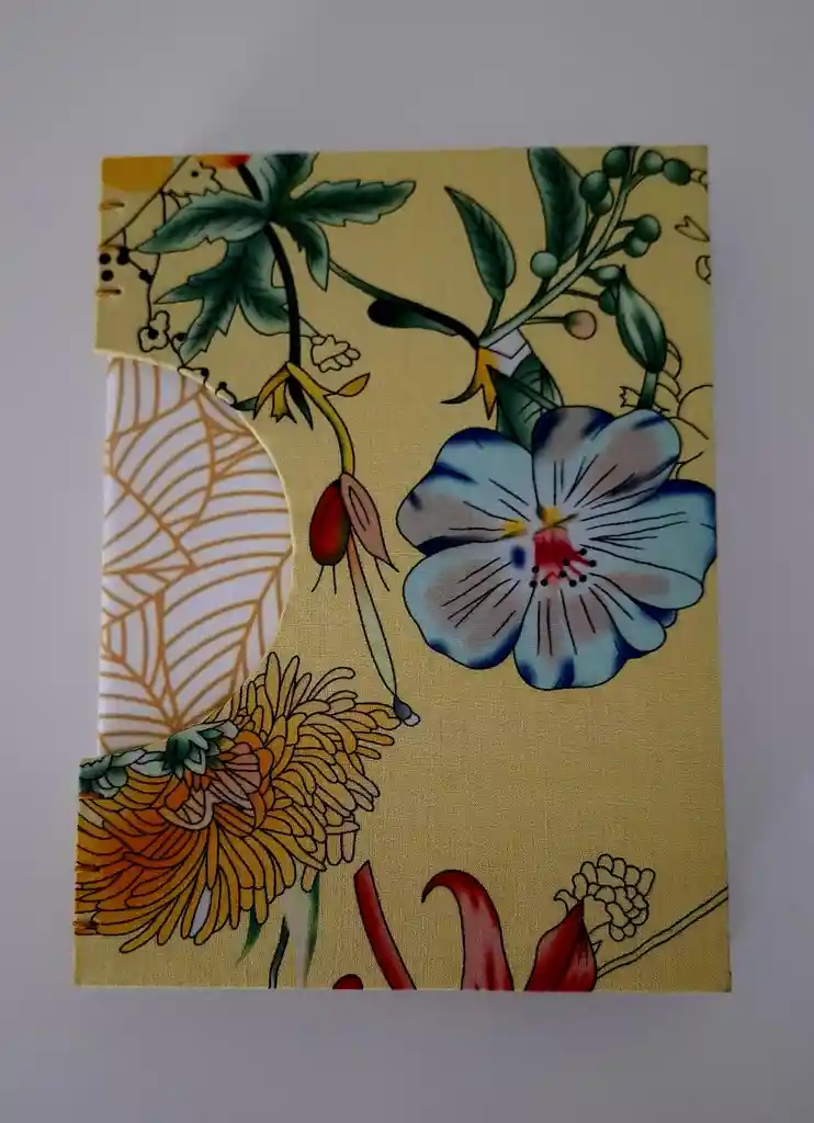 Planner diario y semanal con tapa dura intervenida forrada con tela estampada Lomo expuesto 100 hojas ecológicas organizadoras (50 diarias, 50 semanales) color natural Costura hecha a mano color dorado Hoja decorativa adelante y atrás Tamaño Mediana: 17,5cm * 13cm Encuadernación artesanal 100% hecha a mano Producto local