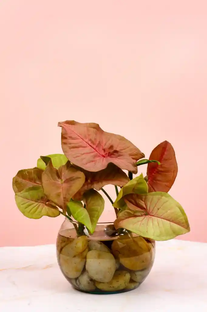 ¡Dale un toque de color y frescura a tu espacio con el Syngonium Podophyllum (Singonio Rosado) en burbuja de cristal 🌿🌸! Esta hermosa planta, con sus hojas rosadas y verdes, está adaptada en agua para mantenerla siempre saludable y vibrante. Las piedras grandes que acompañan el diseño no solo actúan como una decoración moderna, sino que también crean un ambiente elegante y contemporáneo 🪨✨. Perfecta para agregar un toque único y natural a cualquier rincón de tu hogar 🏡, este Singonio Rosado es fácil de cuidar y traerá vida y frescura a tu espacio. ¡Transforma tu hogar con esta pieza única y llena de estilo! 🌱💖