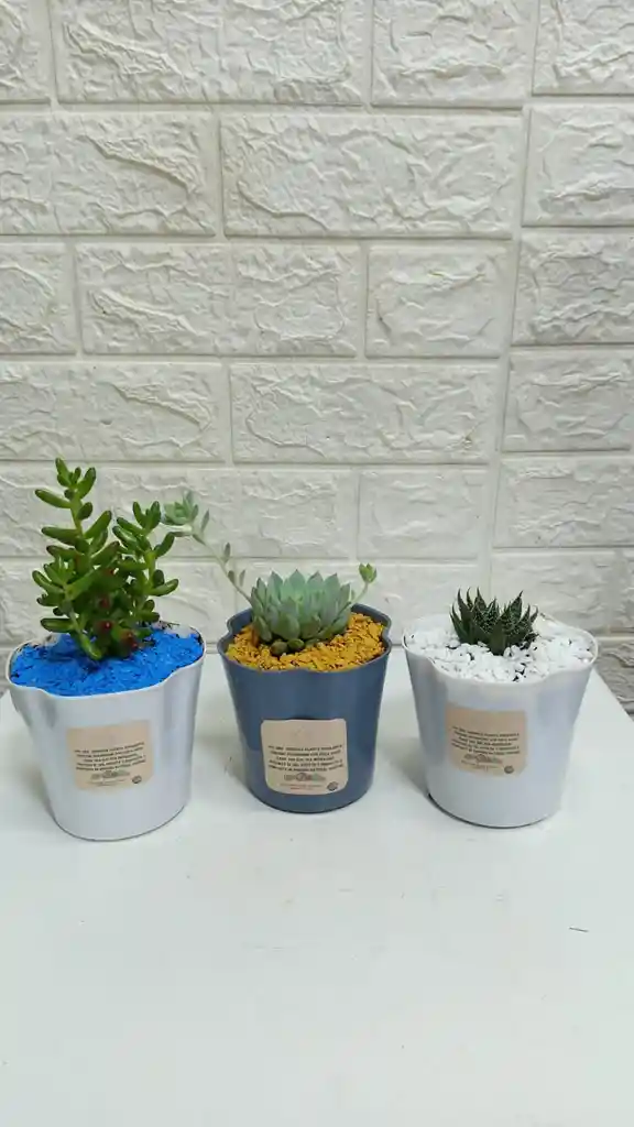 planta natural en hermosa matera con tarjeta indicaciones de cuidados de la suculenta o cactus