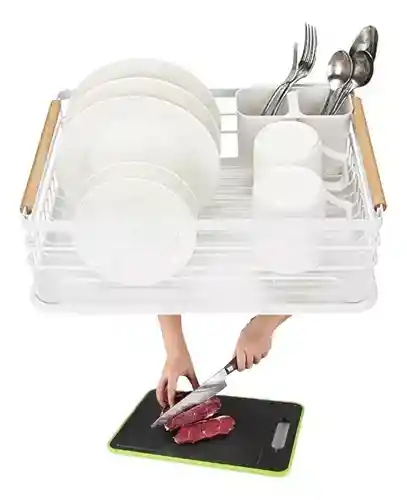 Aquí tienes un texto de venta atractivo para tu platero escurridor: ¡Organización, elegancia y funcionalidad en tu cocina! Dale un toque moderno y práctico a tu cocina con este platero escurridor de lujo, diseñado para brindarte comodidad y estilo. Material premium: Fabricado en acero inoxidable y madera, asegurando durabilidad y resistencia. Bandeja escurridora: Mantiene tu encimera seca y limpia. Tabla de picar multifunción: Incluye afilador de cuchillos, espacio para comprimir especias y función especial para descongelar alimentos rápidamente.