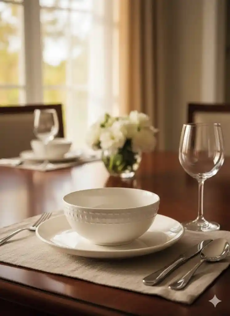 Plato hondo y Plato llano de porcelana blanca en relieve