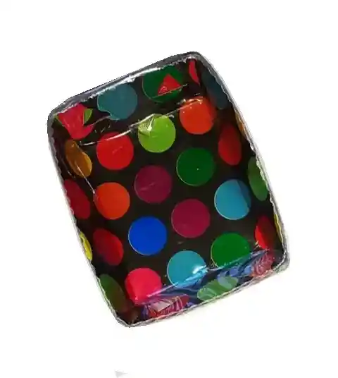 PLATO PARA TORTA / PUDIN NEGRO PUNTOS DE COLORES X 12 UNIDADES