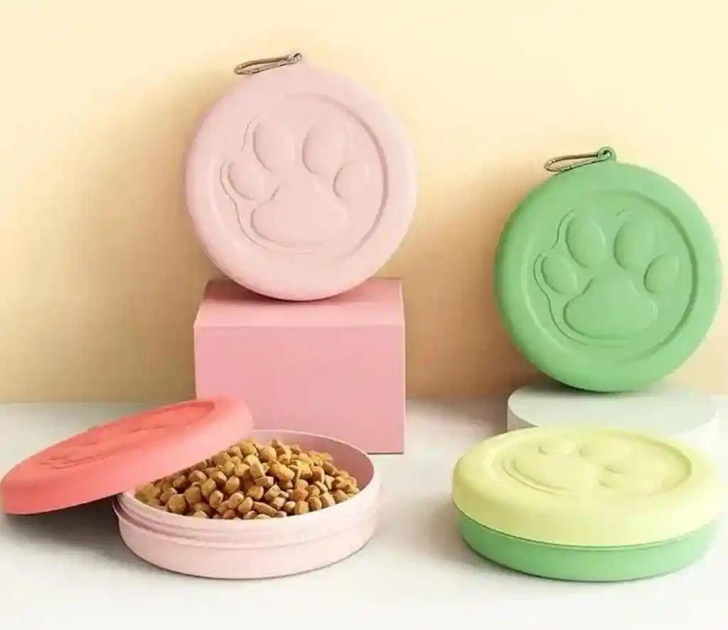 PLATO PORTATIL PARA COMIDA DE MASCOTAS IDEAL PARA VIAJE PARA PERROS Y GATOS