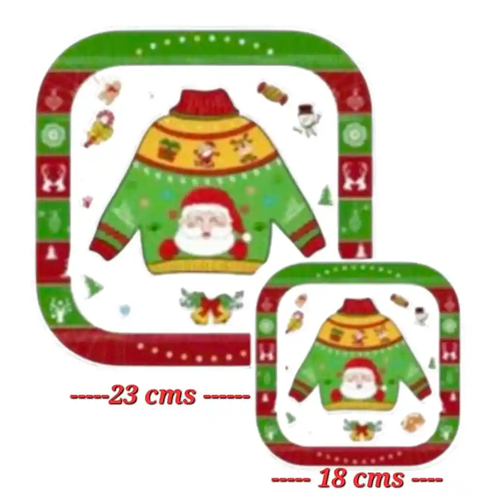 PLATOS NAVIDEÑOS ENCARTÓN DISEÑO SACO BORDADO 10 PLATOS 23 CMS CUADRADOS 10 PLATOS 18 CMS CUADRADOS