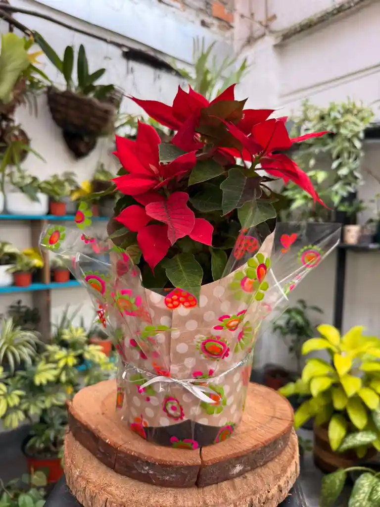 Una planta icónica y el símbolo floral por excelencia de las fiestas decembrinas, valorada por sus hojas de colores vibrantes. Es una planta ornamental popular que representa el amor y los buenos deseos.