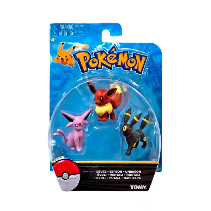 Nos Llegaron Nuevas Figuras de Pokémon y Ahora Tenemos Tripletas en Empaque Compacto Con Las Tres Evoluciones de Eevee Más Famosas. Se Trata de Vaporeon Que es un Pokémon Tipo Agua Jolteon Con Habilidades Eléctricas y Flareon Que Almacena en su Cuerpo Altas Temperaturas de Calor.