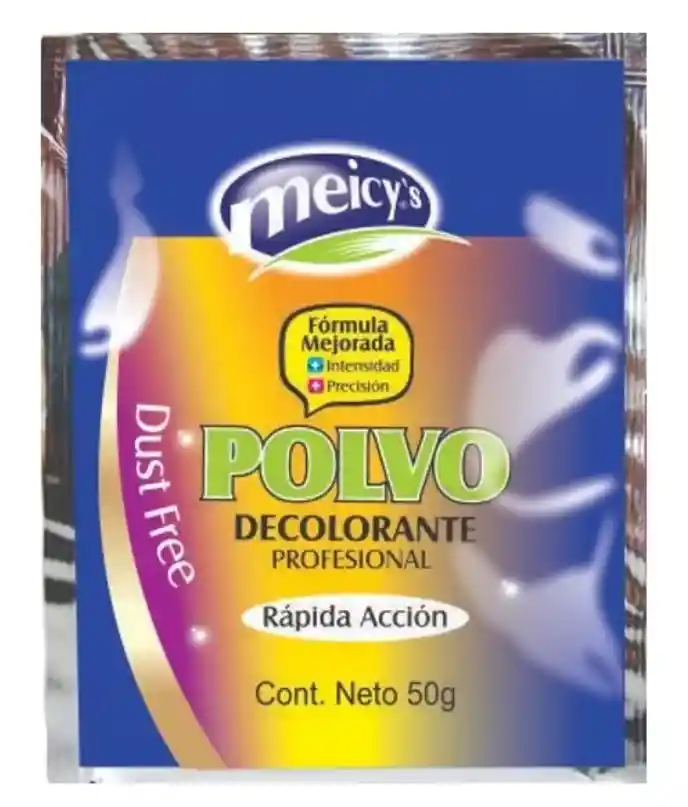 POLVO DECOLORANTE AZUL: MEICYS: Brinda resultados de alta calidad en decoloraciones totales o parciales, Fórmula mejorada de aceites vegetales que protegen la fibra capilar. BENEFICIOS: – Funciona en cabellos naturales y tinturados – Protege la estructura del cabello – En cabellos tinturados aclara de 3 a 4 tonos – En bases naturales aclara hasta 7 tonos – Rápida acción – Fácil aplicación