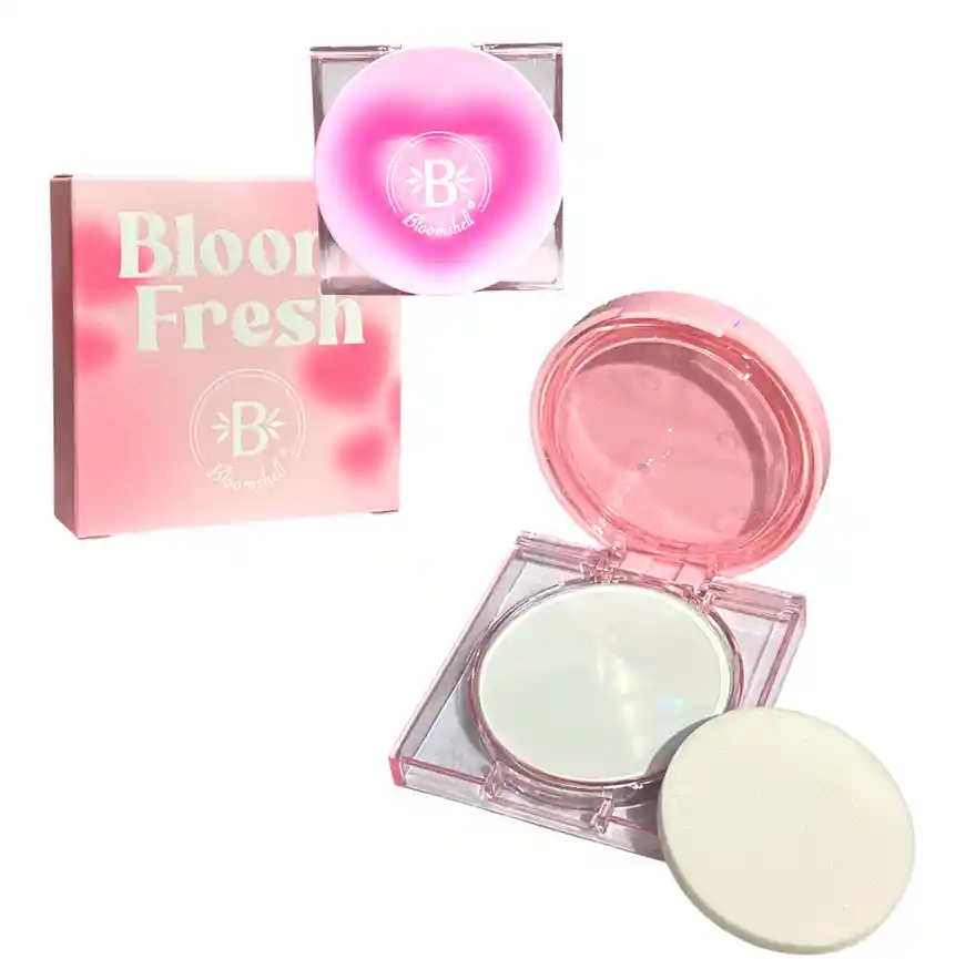 ¡Consigue un rostro impecable y libre de brillo! El Polvo Compacto traslucido de Bloomshell ha sido diseñado para darle a tu piel un acabado mate natural sin dejarla pesada ni acartonada. Es el paso final que necesitas para que tu base se mantenga intacta por horas y tu piel luzca tan suave como el terciopelo. Por qué te va a encantar: Efecto Blurring: Difumina visualmente los poros y las pequeñas líneas de expresión para un acabado tipo "filtro de Instagram". Control de Grasa: Absorbe el exceso de brillo durante el día, ideal para retocar la Zona T. Textura Ultra Fina: Se desliza suavemente sobre la piel, permitiendo que respire mientras unifica el tono. Todo en Uno: Incluye un espejo integrado y un pomo (esponja) de alta calidad para que puedas retocarte en cualquier lugar con precisión. Versatilidad: Puedes usarlo solo para un look natural "no-makeup" o sobre la base para una cobertura total.