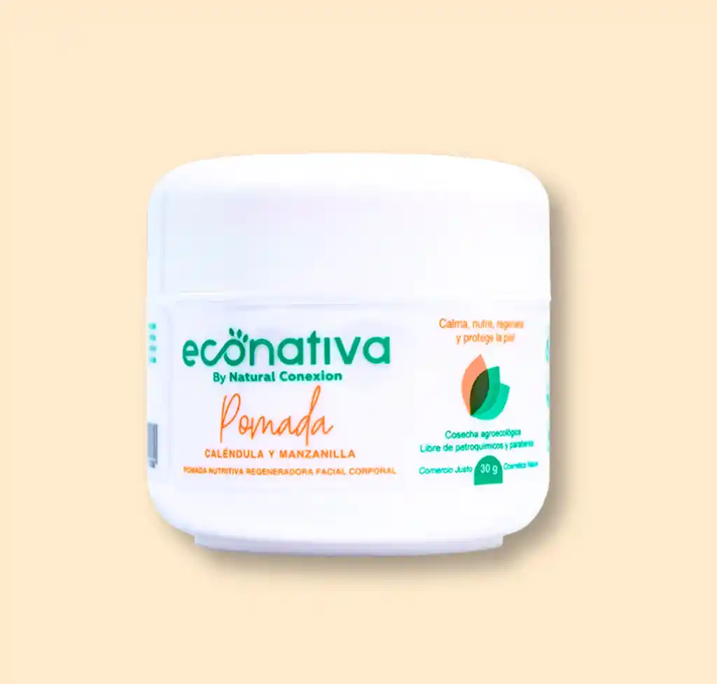 Elaborada con ingredientes activos 100% naturales como la caléndula y la manzanilla, esta pomada ofrece una acción calmante y reparadora ideal para pieles sensibles, irritadas o secas. Gracias a sus propiedades antiinflamatorias, humectantes y regeneradoras, ayuda a aliviar molestias cutáneas, hidratar en profundidad, nutrir la piel y favorecer su proceso natural de cicatrización. También crea una barrera protectora que resguarda la piel frente a agresores externos, manteniéndola suave, saludable y bien cuidada. 30gr By Natural Conexion