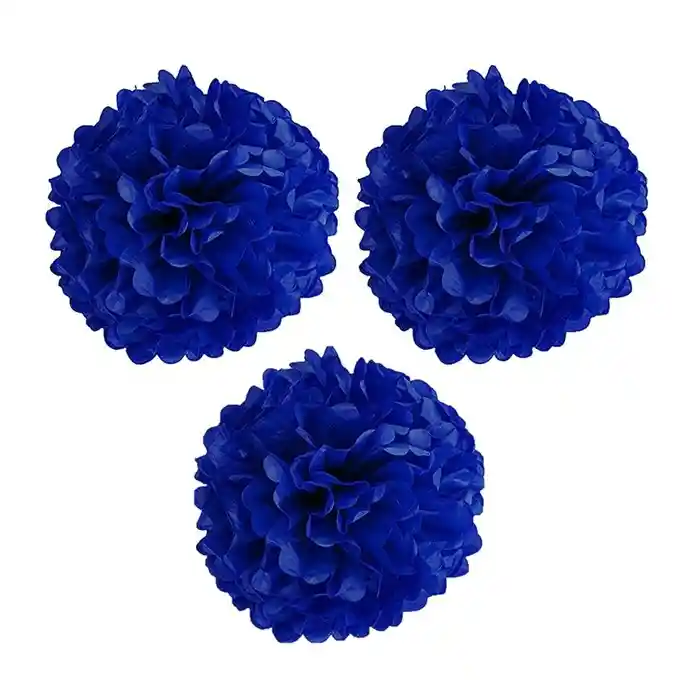 Pompones en papel seda Azul Paquete x 3 unidades 40 cms. Fáciles de armar. Incluyen cinta para colgar no vienen armados