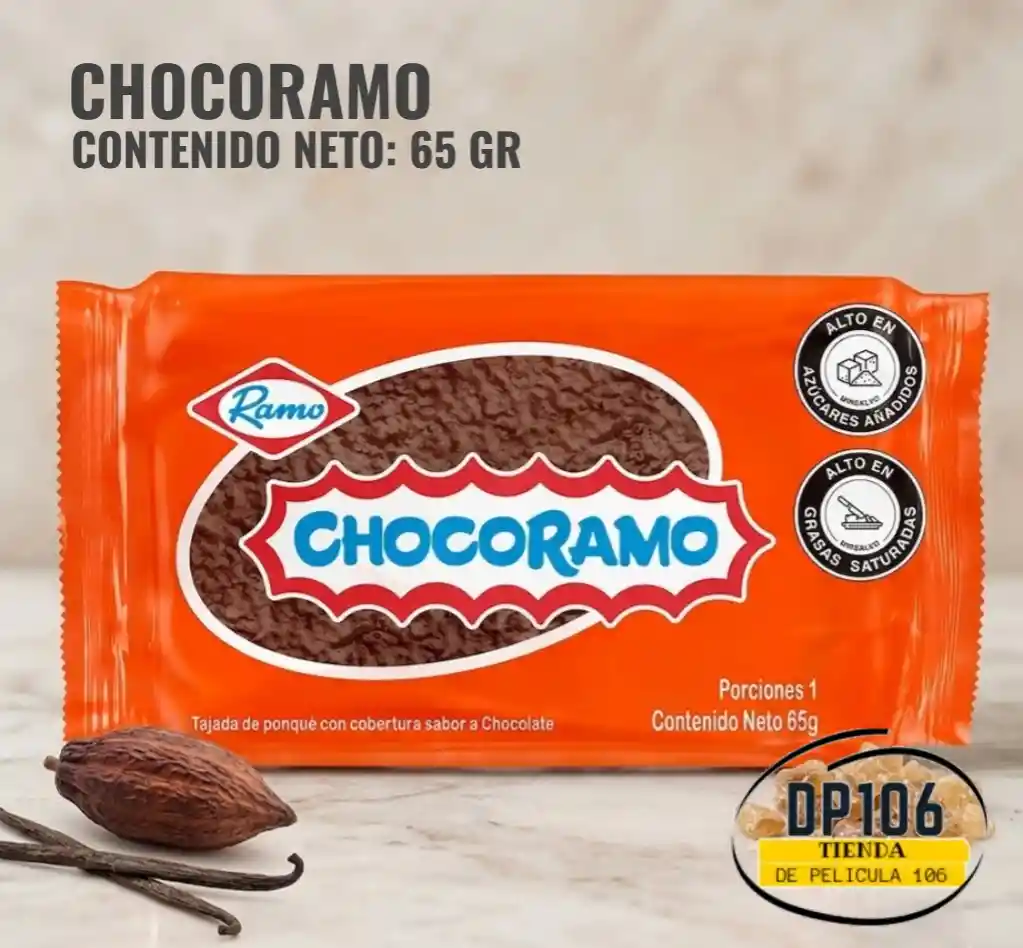 ponque cubierto de chocolate, el tradicional chocoramo de 65 gr