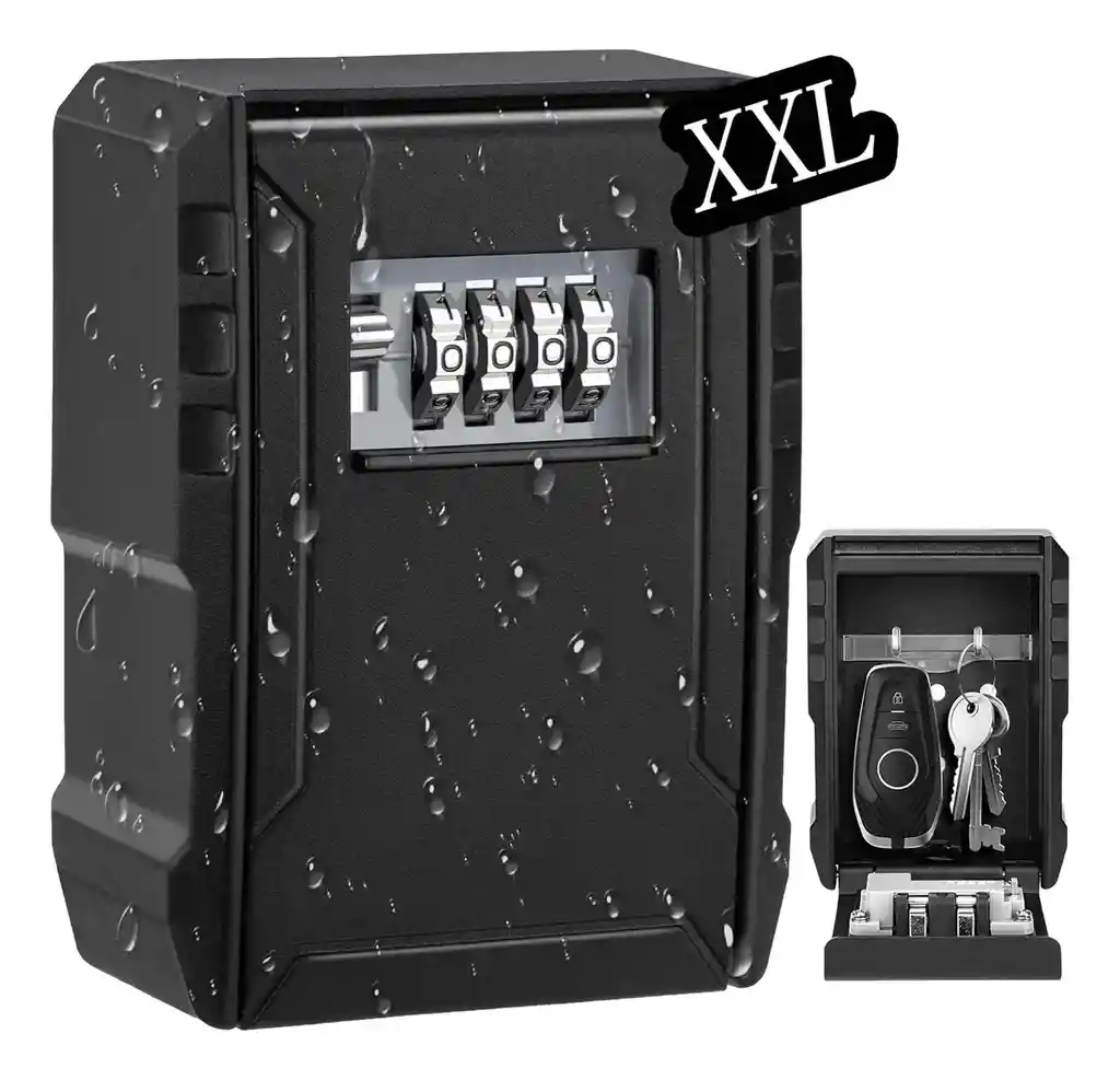 Iron Lock® - Caja de bloqueo de llave XXL para llaves, combinación de 4 dígitos con código reajustable con interruptor A B, caja de seguridad extra grande para interiores y exteriores, caja de bloqueo de llave grande, llaves de repuesto para casa para ocultar una llave Marca Iron Lock Tipo de cierre Combination Color Negro Material Aluminio Zinc Dimensiones del producto 2.1"D x 4.1"W x 5.7"H pulgadas Componentes incluidos 4 tornillos, 4 anclajes de tornillos, 2 colgadores de llaves, 1 manual de usuario (idioma español no garantizado)4 tornillos, 4 anclajes de tornillos, 2 colgadores de llaves, 1 manual de usuario (idioma español no garantizado) Ver más Peso del artículo 1 Libras Estilo Montaje en pared Alarma Cerradura Nivel de resistencia al agua Impermeable Sobre este artículo Materiales duraderos: esta caja de bloqueo para llaves está hecha con un llamativo equilibrio de resistencia de aleación de zinc, aluminio, resistente al agua y resistencia a la intemperie. Protege tus llaves de daños por taladro, martillo, sierra y otros medios. Cuerpo construido de metal: mecanismos de bloqueo. La caja de bloqueo de llave se puede utilizar para el hogar, alquiler de vacaciones, negocios, oficina inmobiliaria y almacén Fácil instalación: la caja de bloqueo de llaves de montaje en pared tiene cuatro tornillos y se puede instalar en muchas áreas para uso en interiores o exteriores para tu hogar, alquiler de vacaciones, negocios, bienes inmobiliarios, oficina, gimnasio, hospitales, escuelas y almacén. Características principales del producto: Nuestra garantía de por vida: proporciona cobertura para la compra original. Contenido de la caja: 1 caja de bloqueo de llave, 4 tornillos, 4 anclajes de tornillo expandibles, gancho para colgar, manual de usuario (idioma español no garantizado). CERRADURA DE IRON Por supuesto, usted debe tener su tarjeta de acceso y las llaves en un lugar seguro. Nuestra caja de cerradura de llave quiere que siempre te sientas segura. Por lo tanto, es importante poner su tarjeta de acceso y sus llaves en un lugar seguro cuando no las necesita. Creamos una caja de cerradura con llave para este propósito. En primer lugar, nuestra caja con cerradura es un artículo práctico que es ideal para mantener tus llaves y tarjetas de acceso seguros cuando no estás disponible. Por supuesto, agentes inmobiliarios, contratistas, limpiadores y personal de mantenimiento están dentro y fuera de su casa cuando puede que no esté disponible. Nuestra caja de cerradura con llave tiene un equilibrio de fuerza y además es fácil de usar. El bloqueo de alta seguridad garantiza que tus llaves y tarjetas de acceso estarán a salvo. ¡No te quedarás encerrado! Las especificaciones de nuestra caja de cerradura con llave están hechas de aleación de zinc y aluminio, que es duradero y ofrece una protección segura. Esta caja de seguridad protege de la combinación de clima, suciedad y material moldeado que protege la caja de roturas. Además, esto es fácil de operar. Esta caja de seguridad viene con dos ganchos para colgar y cuatro tornillos, un anclaje de tornillo que hace que sea fácil de instalar y montar. Igualmente importante es que la caja de bloqueo de llave te dará una sensación segura sabiendo que tienes un juego extra de llaves a mano. La caja de seguridad no solo mantendrá tus llaves y tarjetas seguras con tu propia entrada de código, sino que también tiene una gran cavidad interna que hace que sea fácil guardar muchas llaves y tarjetas de acceso. Ahora, te sentirás seguro conociéndote a ti mismo y otros no estarán bloqueados. Esta caja de cerradura con llave es ideal para negocios, contratistas, subcontratistas, administradores de propiedades, niños y familiares, personal de limpieza y mantenimiento, almacén, barcos, vehículos recreativos, alquileres de vacaciones y es ideal para cualquier corredor o uso deportivo al aire libre. Piensa en tu caja de llave para muchos propósitos. Ya sea que estés buscando un juego adicional de llaves o necesitas proporcionar llaves a otros, esta caja de cerradura te proporcionará la seguridad que estás buscando. En resumen, nuestra caja de seguridad le proporcionará una tranquilidad de una marca en la que puede confiar. Por último, tendrás todo lo que necesitas de nuestra caja de llave que no te defraudará. Garantía del vendedor: 6 meses