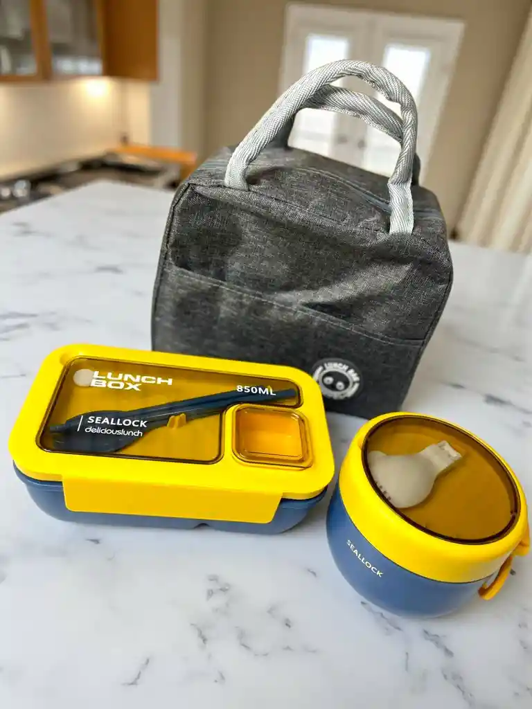 Tipo de producto: Lonchera y recipientes herméticos para alimentos Capacidad: Loncheras rectangulares: 850 ml cada una Recipientes redondos: 400 – 500 ml aprox. Materiales: Plástico PP de grado alimenticio (libre de BPA) Tapa de cierre hermético con sellado de silicona Accesorios incluidos: Cucharas o sporks integrados en los recipientes redondos Compartimentos en las loncheras rectangulares Colores disponibles: Amarillo, verde, rosa Presentación: Piezas individuales combinables Características Cierre hermético tipo “SealLock” que evita derrames. Compartimentos internos en la lonchera rectangular para separar alimentos. Incluye utensilios (spork o palillo-cuchara) integrados para mayor practicidad. Diseño compacto y ligero, ideal para transporte diario. Superficie lisa, fácil de limpiar y apta para lavavajillas (rejilla superior). Material resistente al calor, adecuado para uso en microondas (sin la tapa).