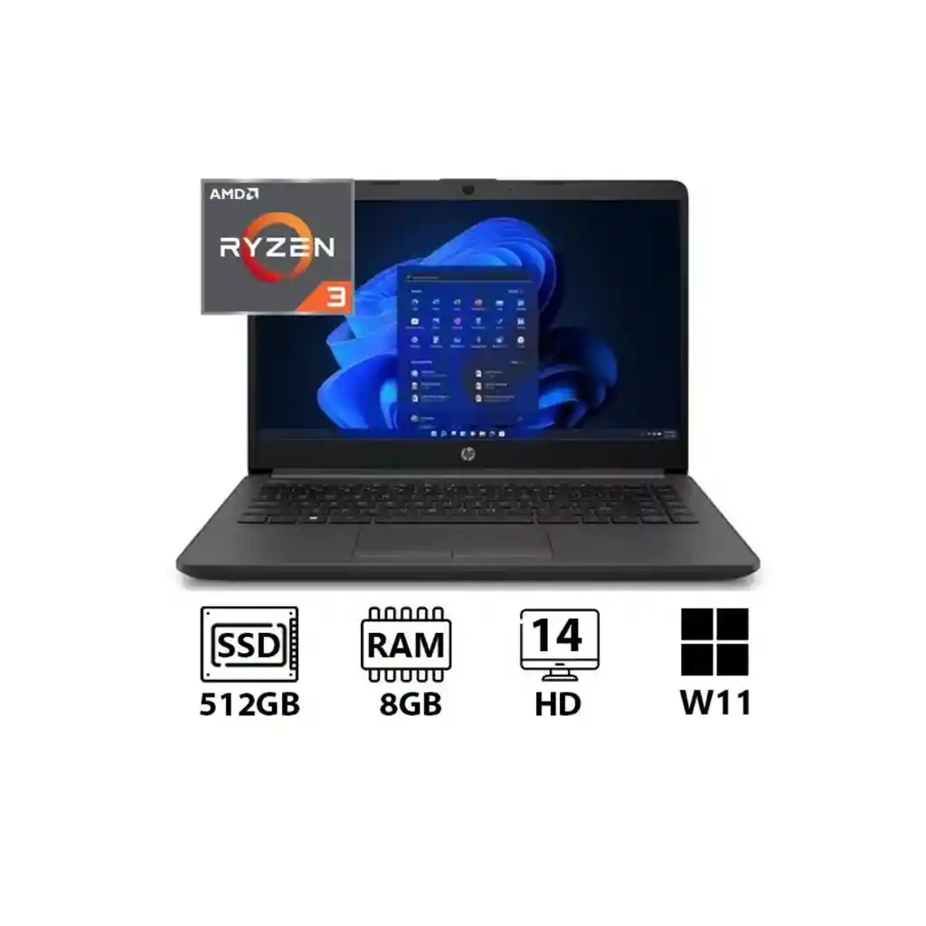 Portátil HP con procesador AMD Ryzen 3, ideal para trabajo diario.