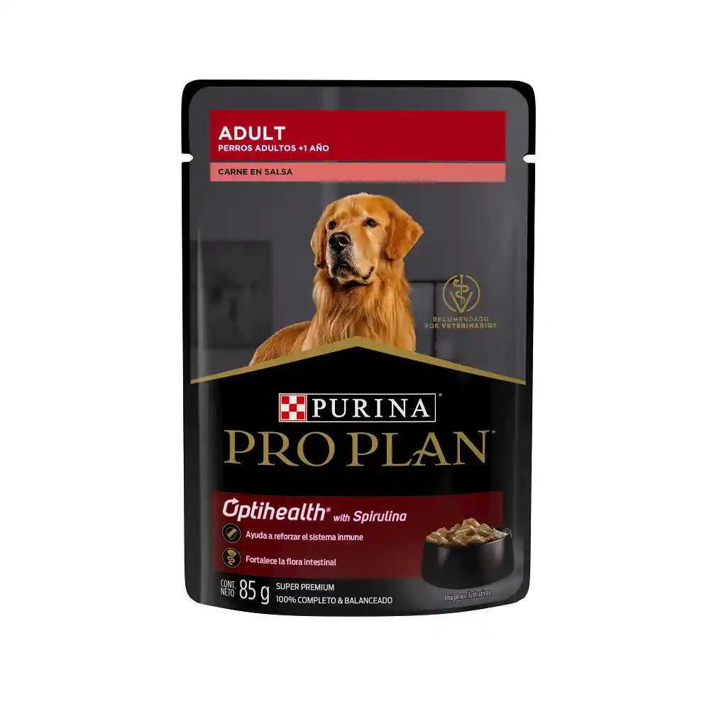 Purina® Pro Plan® carne en salsa es un alimento balanceado y completo húmedo para perros adultos.