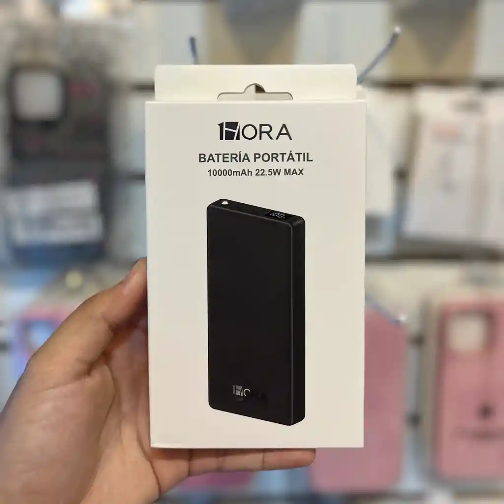Batería portátil 1Hora 10.000 mAh – 22.5 W Batería externa compacta de 10.000 mAh con carga rápida de hasta 22.5 W para mantener tus dispositivos con energía cuando no hay toma de corriente disponible. Compatible con smartphones, tablets y otros gadgets con puertos USB-C o USB-A. Incluye pantalla digital LED para mostrar el nivel de batería y múltiples protecciones de seguridad contra sobrecarga y cortocircuitos. Ideal para uso diario y viajes. Características principales: • Capacidad: 10.000 mAh • Carga rápida de hasta 22.5 W • Puertos: USB-C y USB-A (permite múltiples cargas) • Pantalla LED de nivel de batería • Protecciones de seguridad integradas