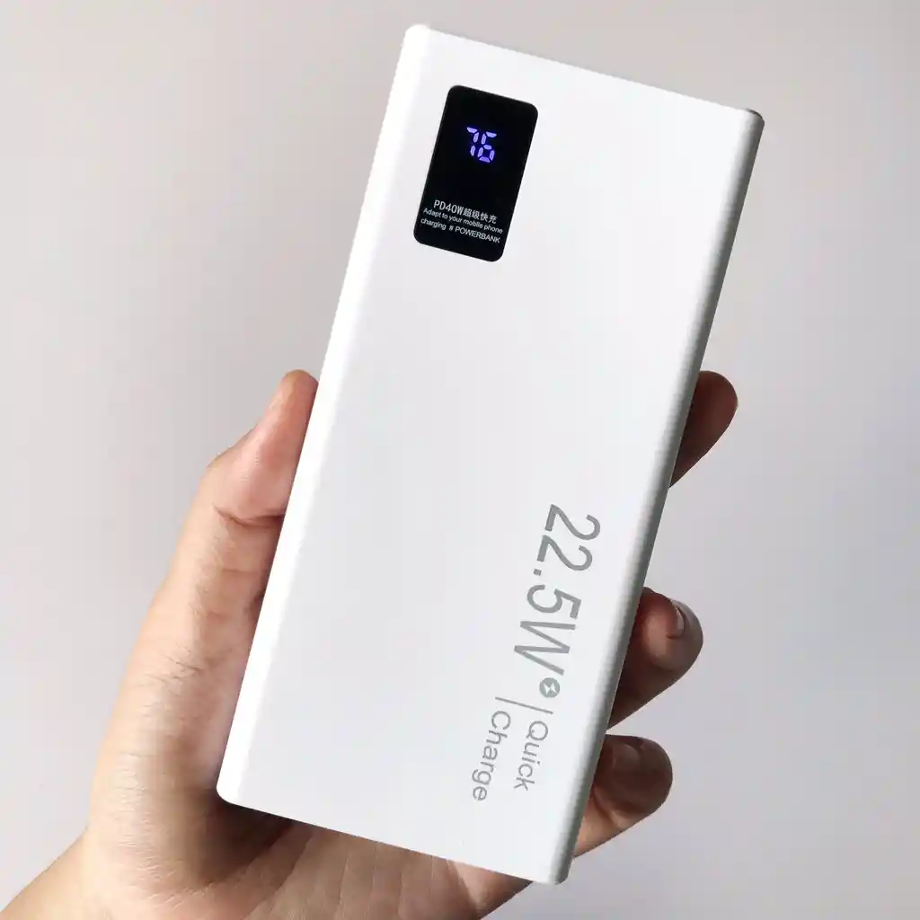 ¿Cansado de que su cargador portátil demore una eternidad? Este no es un Power Bank cualquiera. Con 22.5W de potencia real, carga su celular hasta el 50% en solo 30 minutos (compatible con Huawei SuperCharge, Quick Charge y Power Delivery). Capacidad Gigante: 20,000 mAh (Cargue su iPhone o Android entre 3 y 5 veces completas). Carga de todo a la vez: Tiene 3 puertos de salida. ¡Cargue su celular, los audífonos y el de su pareja al mismo tiempo! Entrada Dual: Lo puede recargar con cable Tipo-C o Micro-USB. Diseño Pro: Acabado elegante y resistente de Dongguan Quan Yun Technology. ✅ ¡Garantizado! Ideal para viajes largos, trabajo en calle o cuando se va la luz. No se quede incomunicado.