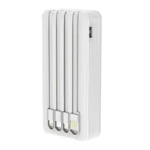 El Power Bank 20.000 mAh Blanco PWB 118 es la solución ideal para quienes necesitan una fuente de energía confiable y de gran capacidad. Con una impresionante capacidad de 20.000 mAh, este elegante banco de energía blanco está fabricado en material ABS y viene con 4 cables de salida: Tipo C, USB, micro USB (V8) e iPhone. Su tiempo de carga es de 4 a 5 horas, y ofrece una tensión de salida de 5V/2.1A para una carga rápida y eficiente. Además, cuenta con indicadores de carga para que siempre estés al tanto del nivel de batería. Capacidad: 20.000 mAh Material: ABS Cables de salida: Tipo C, USB, micro USB (V8), iPhone Tiempo de carga: 4 a 5 horas Tensión de salida: 5V/2.1A Características adicionales: Indicadores de carga